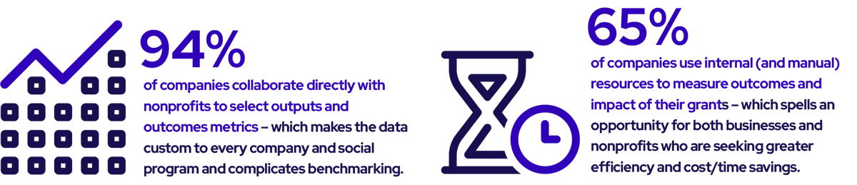 All together, this data reveals a powerful opportunity to bring scale to an area of CSR that has been ripe for disruption for decades. With more companies driving towards efficiency gains and cost savings, now is the time to consider reinventing the traditional approach to Measurement & Evaluation (M&E). But it will take the courage of impact leaders to shed old habits and approaches to historical data to truly realize the value of outcomes-driven philanthropy.